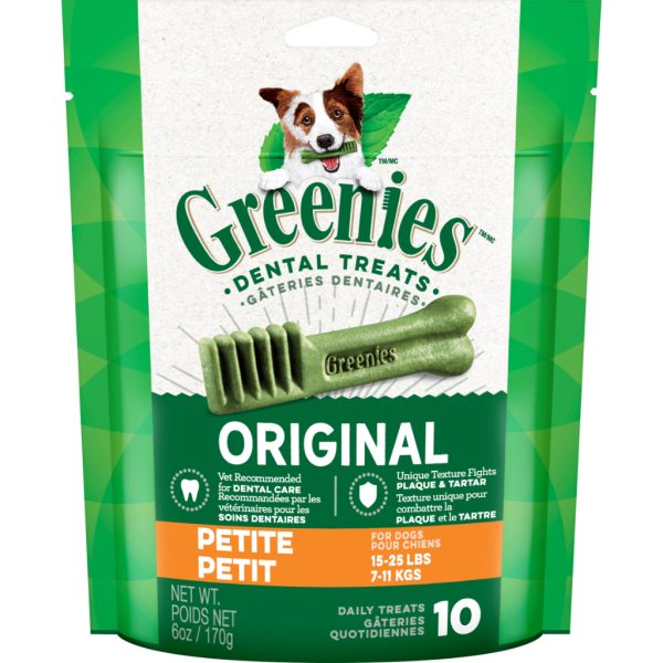 Greenies Original Petite Dog Dental Treats is all it takes for clean teeth, fresh breath and a happy dog. These original-flavor dental dog chews are delicious and also feature a chewy texture that fights plaque and tartar. Veterinarians also recommend these tasty dental treats for at-home oral care. Greenies Original Petite are also made with highly soluble ingredients for easy digestion.